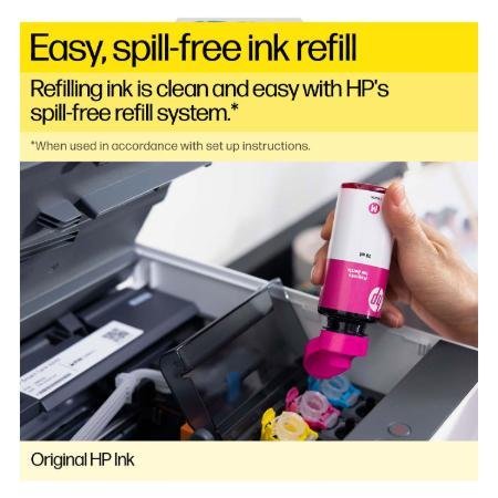 HP 31 Magenta Original Ink Bottle is specifically designed for high-volume, reliable color printing. Its spill-free refill design and color-coded cap ensure a clean and easy refill process for HP Smart Tank printers. With 70 ml of vibrant, dye-based magenta ink, it delivers sharp, fade-resistant printouts and supports up to approximately 8,000 pages. This makes it an excellent choice for home, school, or small office use—combining great value, quality performance, and environmental responsibility through HP’s recycling program.